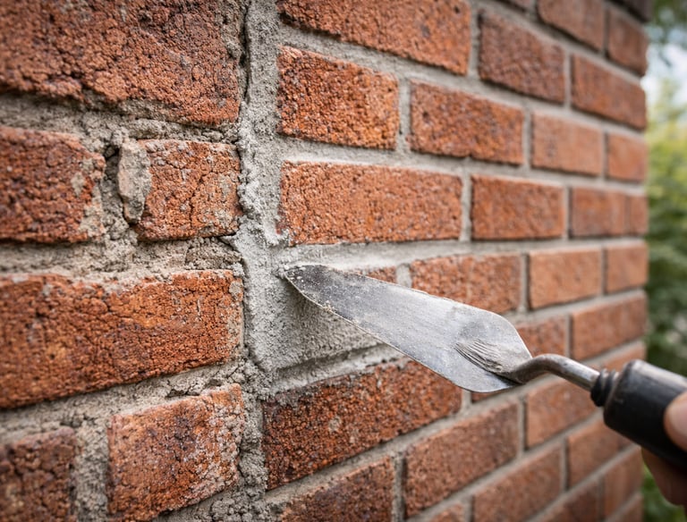 Kleine herstelwerkzaamheden voor beschadigde voegen tijdens gevelreiniging.